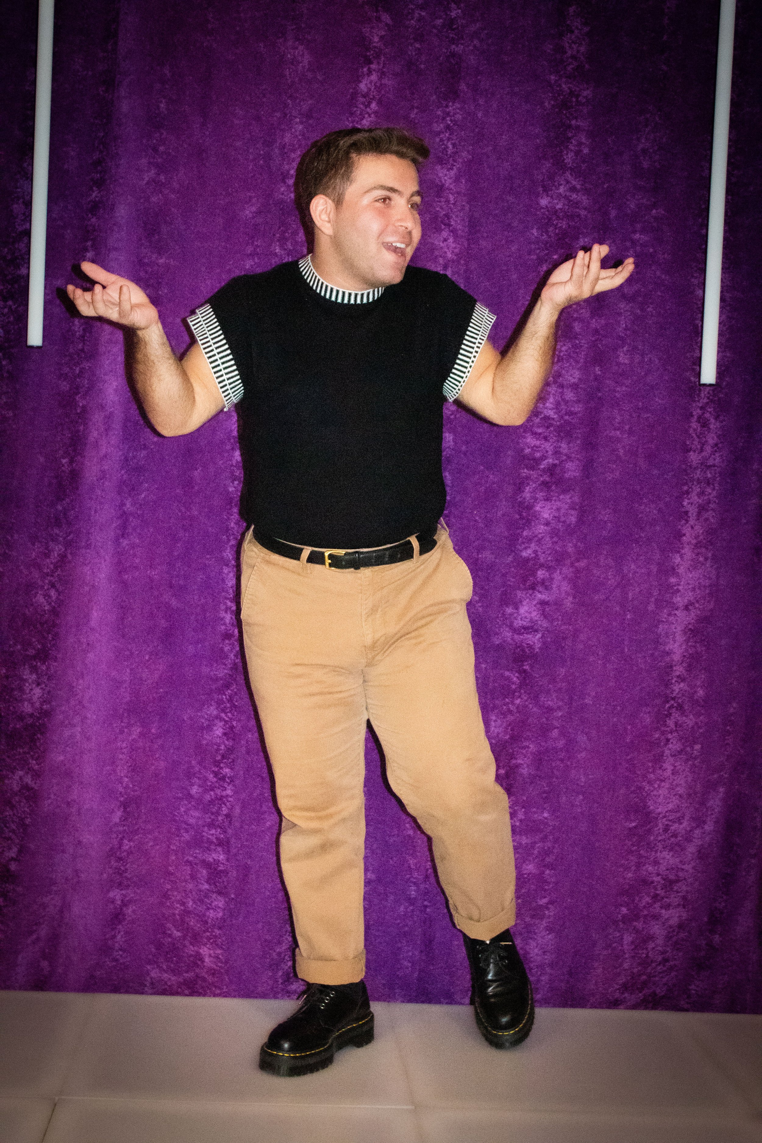 MMC offered him the opportunity to continue his relationship with theatre on new terms.He learned that he had so much more to offer as a performer than a funny, goofy, sidekick with a kick-ass song. Theatre is more than that. He could fall in love as a romantic lead, he could be extremely dark as a villain, the sky was the limit. It was here he developed the foundations for his artistic voice. Professors and peers encouraged him to ask questions like, “What do I bring to a character?” and “How can I more deeply immerse myself in the world of a play?” Rather than have roles decided for him, he had more of a say. He became an advocate for the creative work he wanted to be in. He is extremely thankful for getting to work with teachers like Michael Mendez, Brandon Logan, Cassie Okenka, and Alexa Green because they pushed him to do more and be more. They never let him get comfortable and be stagnant, which he was never a big of anyways.